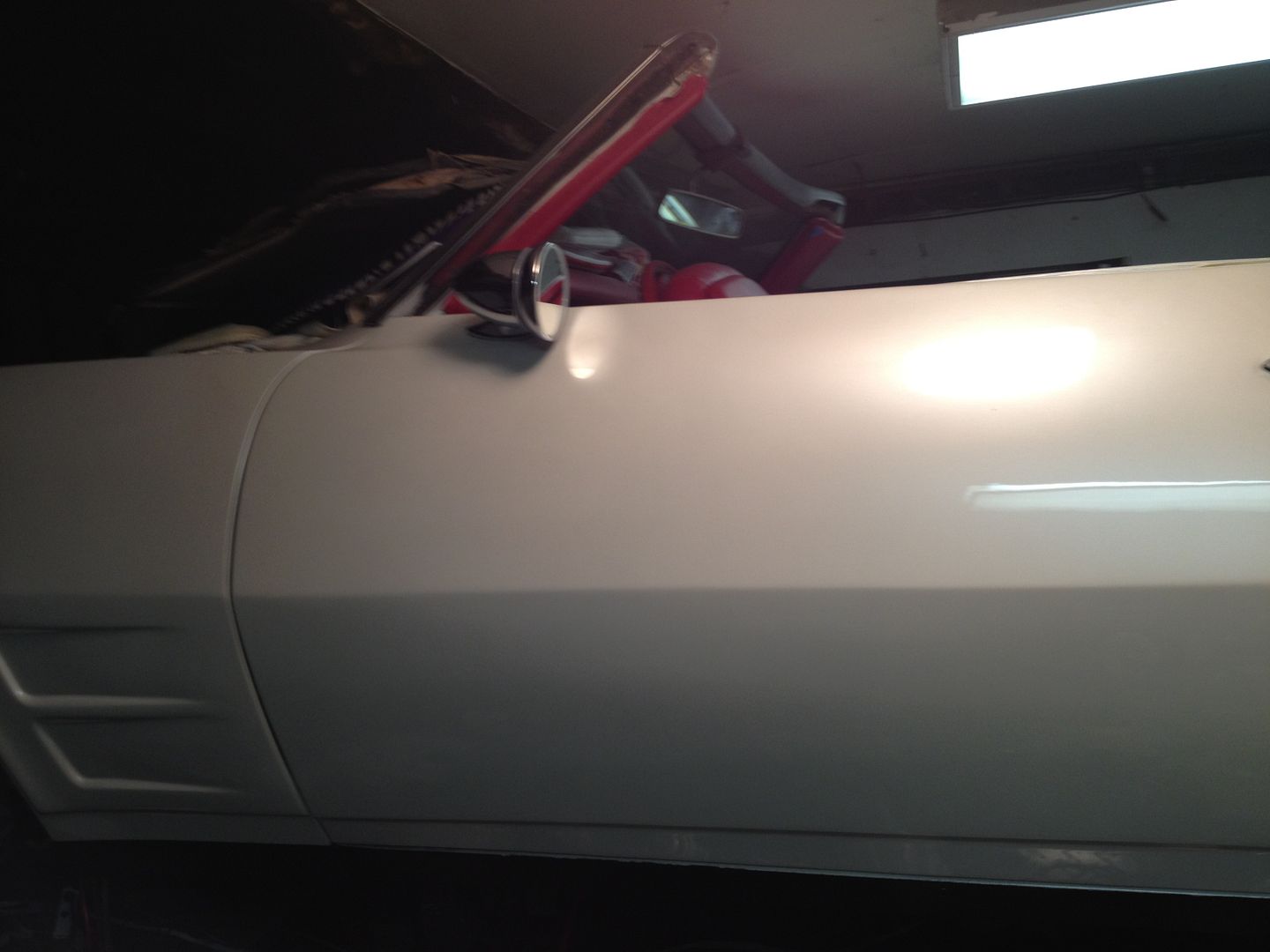 First thing I noticed was the front 67 valance on the 68, but I looked through everything inside and all seemed good, no signs of collision, etc. Teh color of the car was originally a yelllowish\baby cream color (teh name escapes me), and was covered in the last 40 years with a crappy Miracle white coat and some weird pinstripping. The top is halfway good (rera part was half cat eaten), the interior is pretty decent but red so taking some getting used to... As the interior is good it is hard to justify changing it just yet...