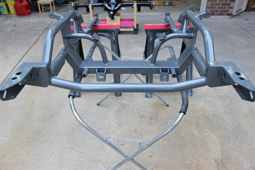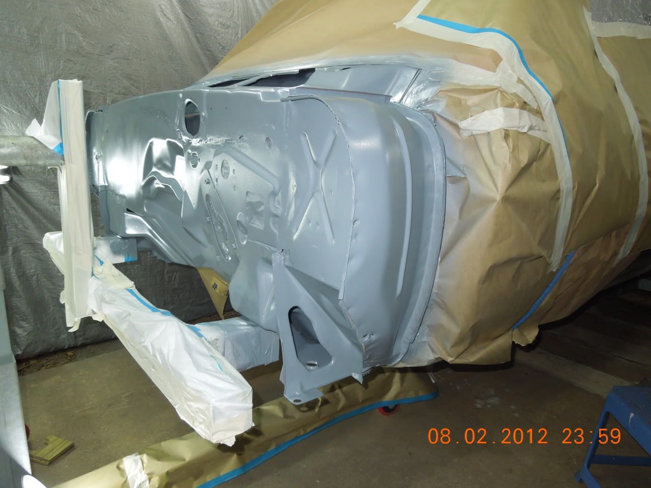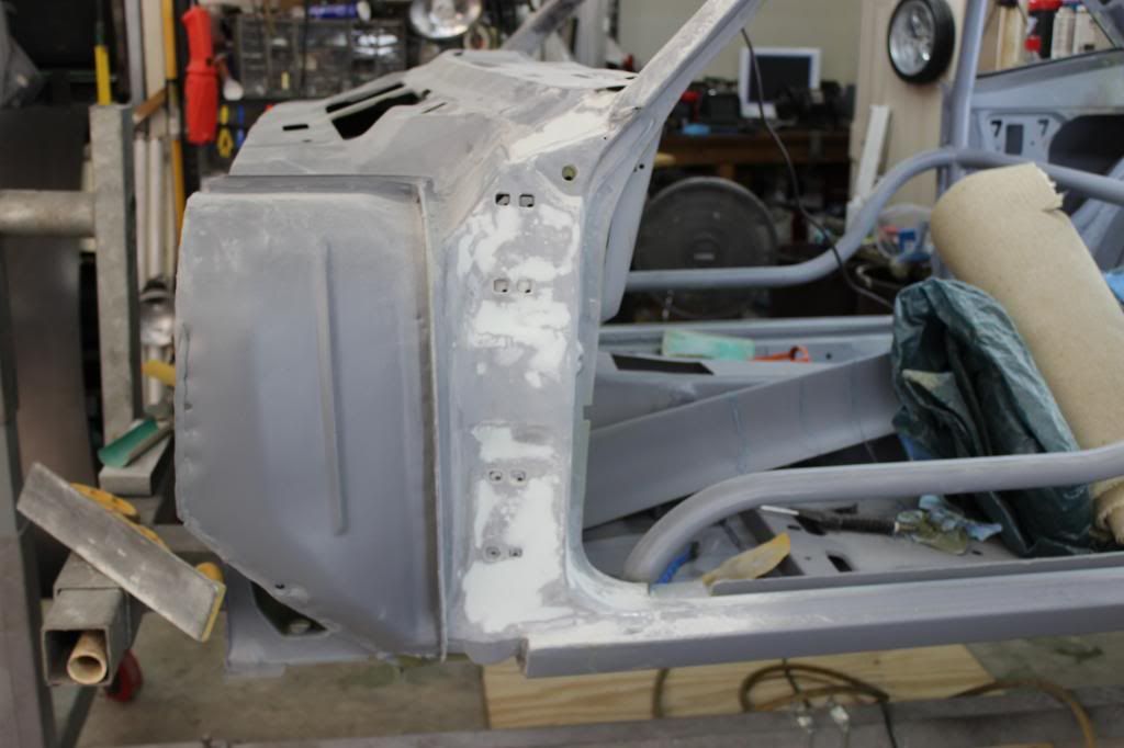 I just got the fenders and inner fenders together and hanging on the car, the drivers side is being a little more trouble but it's going in the right direction. I did have to do some minor trimming of the inner fender to clear the "TCI" subframe. The next few days I am planning on getting the valance and header panel in and see how things look. :yes: :dance: