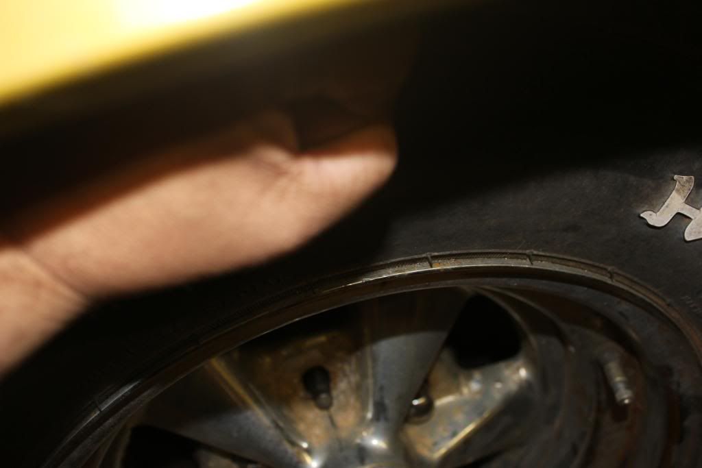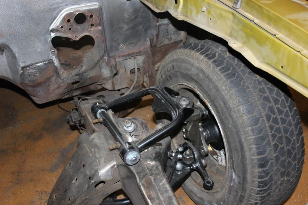 Before the body was stripped, and a mock up with the old wheels and tires to check the stance