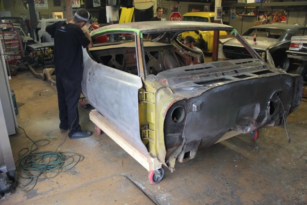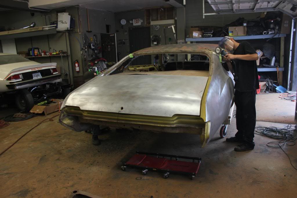 http://i813.photobucket.com/albums/z...e/IMG_1082.jpg Jose working on the roof. http://i813.photobucket.com/albums/z...e/IMG_1083.jpg DA sanded in 80 grit in preparation for priming http://i813.photobucket.com/albums/z...e/IMG_1084.jpg Stripping the old undercoating from the wheel wells. I have never seen it come off so easily...no heat, just scraping. http://i813.photobucket.com/albums/z...e/IMG_1085.jpg http://i813.photobucket.com/albums/z...e/IMG_1086.jpg http://i813.photobucket.com/albums/z...e/IMG_1087.jpg http://i813.photobucket.com/albums/z...e/IMG_1088.jpg |
