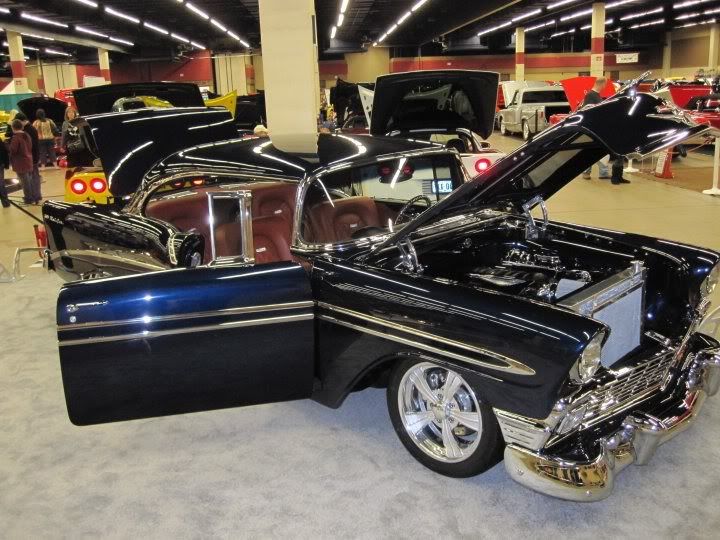 Complete build time - 13 months www.Heartlandcustoms.us Complete frame off rotisserie restoration Every single thing in this car is brand new except the body and the trim, every nut and bolt is new and stainless steel Custom built Art Morrison chassis with coilover suspension Chassis is painted to match the body Under body is slick undercoated and painted to match Strange Engineering Ford 9" Rearend with 31 spline axles Stainless steel brake and fuel lines Stainless steel fuel tank Centech wiring harness All external lights except headlights are L.E.D. Halogen Headlights 12" Rotors with Wilwood disc brakes and chrome calipers Power rack and pinion steering Custom built, ceramic coated 2.5" Borla exhaust system with chrome tips Custom ceramic coated headers Corvette crate LS3/450hp Crate 4L60E automatic transmission Intro wheels - 17x8, and 18x10 Toyo T1R tires - 245/45/17, 275/40/18 PPG Black Sapphire Metallic paint All original trim refinished and polished Billet hood hinges Custom inner fenders with hinge pockets Custom smooth firewall Smoked glass Chrome engine accessories Vintage A/C and heat with defrost Cruise control Custom polished aluminum radiator and condenser Custom built core support Chrome master cylinder and booster All wiring and A/C and heater lines are hidden inside the custom inner fenders Interior Completely custom designed interior and trunk Saddle Italian leather 25 one off billet parts and mesh Custom clear coated real red rosewood accents-not hydrographics or laminate Custom shifter handle Custom steering wheel with rosewood and leather split grip Polished Ididit column Full length console that splits rear seat into two bucket seats Dakota digital gauges Custom stereo system with Ipod and bluetooth German square weave carpet Custom headliner with billet and rosewood accents Billet knobs and cranks Billet A/C controls Billet A/C vents with custom enclosures Custom kickpanels with one off billet speaker grilles Custom pakage tray with one off billet speaker grilles that match door panels Custom designed door panels with one off billet and rosewood accents Custom built seats with Bentley diamond pattern inserts Custom leather sill plates with BelAir emblems Custom designed smooth dash with glove box delete All interior panels smoothed and painted then cleared with soft touch clear |