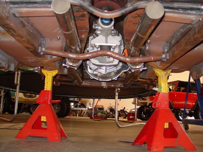 Here is a top view of the exhaust mounts. http://i43.photobucket.com/albums/e3...y99h/010-5.jpg Gas tank is mounted (Ricks Stainless Tanks did an excellent job!) http://i43.photobucket.com/albums/e3...y99h/009-4.jpg Fuel door welded up http://i43.photobucket.com/albums/e3...y99h/008-4.jpg Filller neck in trunk http://i43.photobucket.com/albums/e3...y99h/007-4.jpg I will upload the other pics on Monday when I get my camera. All of the sheetmetal is finished and welded into place, exhaust is finished (except the tips), the clutch and brake pedals are finished, and most of the cage is mocked up. Still haven't finished the dash yet (still brainstorming on how to mount the dvd,navi). Now we are mounting the core support, radiator, and condensor. I will have pics of this in the next week or so. |