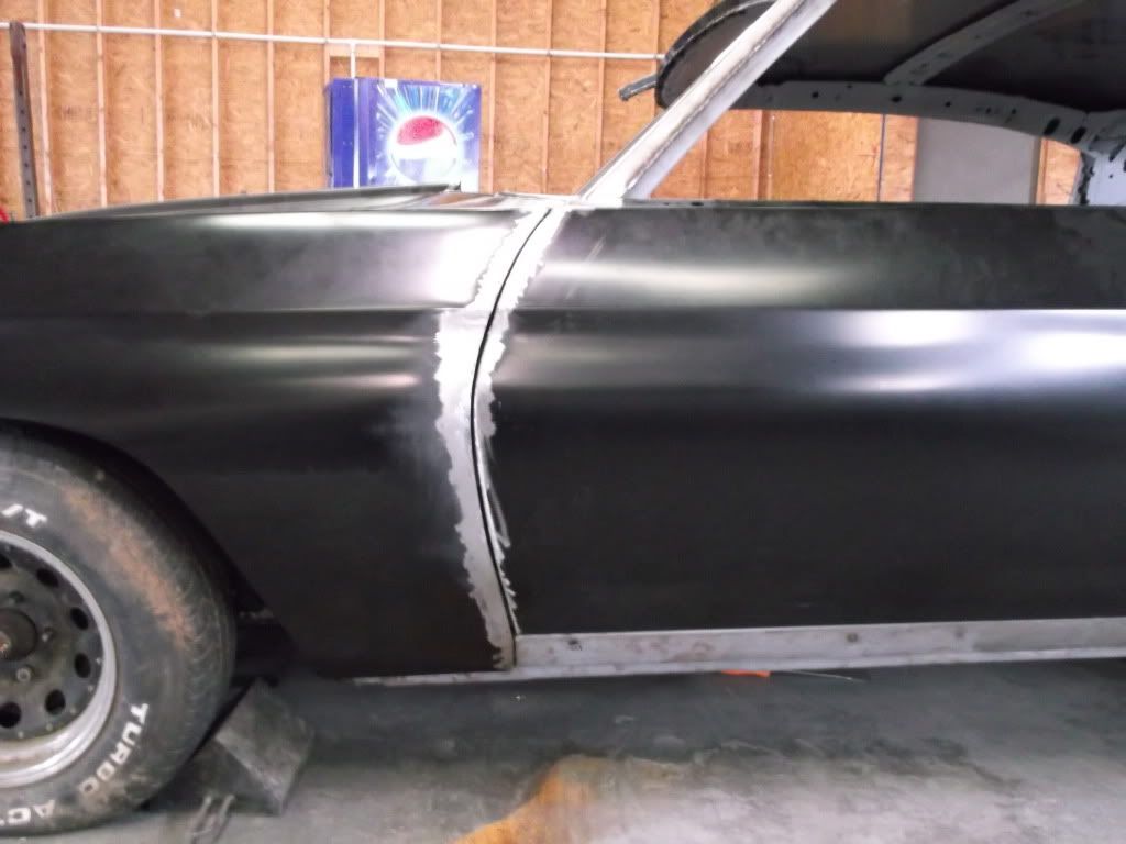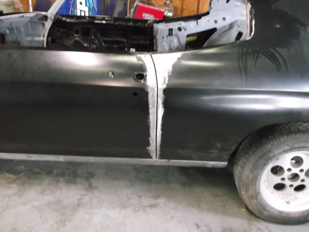 The back of the rocker were ate out so i just made them. Replaced the roof and shaved the drip rails.http://i1210.photobucket.com/albums/...rm1986/332.jpghttp://i1210.photobucket.com/albums/...rm1986/338.jpghttp://i1210.photobucket.com/albums/...onepics986.jpg After that i put the car back on the frame.The car was wrecked bad at one point in time. once blasted i discovered that their were a few spots where the frame had some major tears. I went in and repaired them. He has all new tubular UMI performance suspensionwith QA1 coilovers in the front and 1" drop springs in the back. New moser 9" rear end,35 spline axles.6 speed tremec trans and a GM 572 OOOOOOOOyeah.:D http://i1210.photobucket.com/albums/...rm1986/030.jpg Im waiting on the headers so i can finish making my frame bracing kit and crossmember. In the mean time i put all the sheetmetal back on the car and started correcting the terrible gaps from all the aftermarket parts. I read the widow maker forum and was very impressed by his gaps. It inspired me to make all my gaps the same. People dont understand how much time it take to make the gaps perfect. http://i1210.photobucket.com/albums/...rm1986/004.jpghttp://i1210.photobucket.com/albums/...rm1986/003.jpghttp://i1210.photobucket.com/albums/...rm1986/006.jpg http://i1210.photobucket.com/albums/...rm1986/007.jpghttp://i1210.photobucket.com/albums/...rm1986/006.jpghttp://i1210.photobucket.com/albums/...rm1986/005.jpg