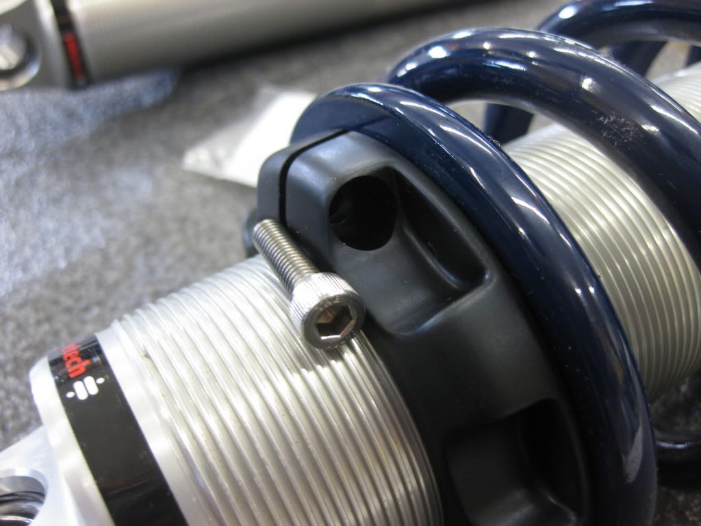 http://i212.photobucket.com/albums/c...oilover005.jpg http://i212.photobucket.com/albums/c...oilover006.jpg You can see that groove there on the base of the shock's head. A retainer ring slides into that groove and allows the upper spring retainer to rest on it and not fall out. http://i212.photobucket.com/albums/c...oilover008.jpg That retainer ring is in the bag that is next to the shock in this picture. http://i212.photobucket.com/albums/c...oilover007.jpg |
