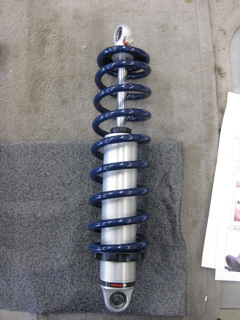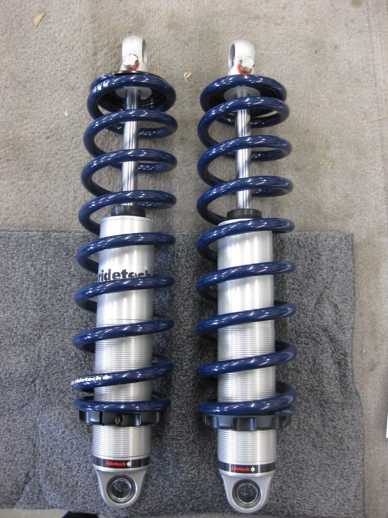Ridetech says that these shocks should be between 13.5-14.5 inches from eye to eye at ride height. That lenght is in the shocks "sweet spot". http://i212.photobucket.com/albums/c...ch/coil027.jpg http://i212.photobucket.com/albums/c...ch/coil028.jpg Pic of the final product. http://i212.photobucket.com/albums/c...ch/coil030.jpg Cool view from the rear of the car...those coilovers look good under there!!! http://i212.photobucket.com/albums/c...ch/coil029.jpg I am very impressed with this coil over kit. The difference in ride quality and handling is night and day!!! The guys at Ridetech really helped me out with the ride height issue and got me to where I wanted to be. I couldn't be happier with this product! The springs and shocks are 100% A+ quality and they are made in America...which just makes it that much better!!! Feel free to ask me any questions. |