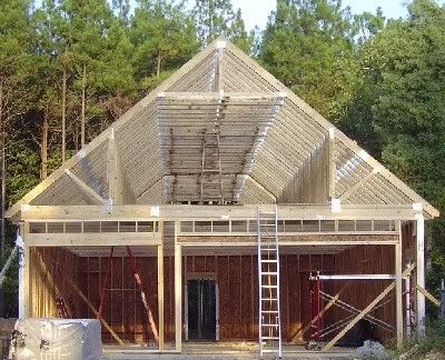 -single bay is 2 cars deep w/ 10x10 paint/finish/clean room behind the 2nd car no electrical switches/outlets in finish room. lights are recessed above plexiglass. unsure how i want to vent the room yet. -behind the double bay is a 35x20 workshop. -behind the garage is the carport -attic space above will be storage & eventually a couple of bedrooms -walls are 10' tall to allow room to maneuver 8' lumber & add 2post car lift. added extra 4" of footing under pad for car lift. -plumbing for air tools throughout -air compressor & vacuum system for wood tools are enclosed under stairway so i don't have to hear them. -lots of lighting http://i49.photobucket.com/albums/f2...ne/garage2.jpg http://i49.photobucket.com/albums/f2...ne/garage1.jpg |