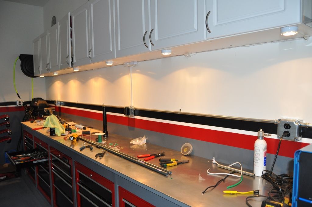 Okay - now put about a 2" trim piece on the bottom of those uppers and hide those lights and the wiring.... :thumbsup: