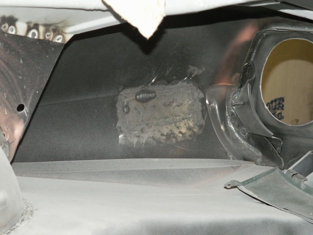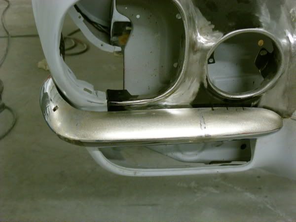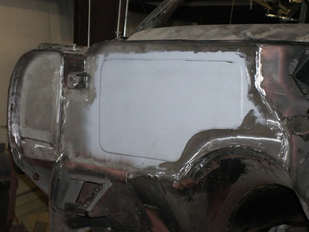 1/4 - 1/2" thick bondo http://i835.photobucket.com/albums/z...d/PICT0764.jpg Rust painted over http://i835.photobucket.com/albums/z...d/PICT0756.jpg Knowing the limit of my skills I decided to send it to a professional shop. |