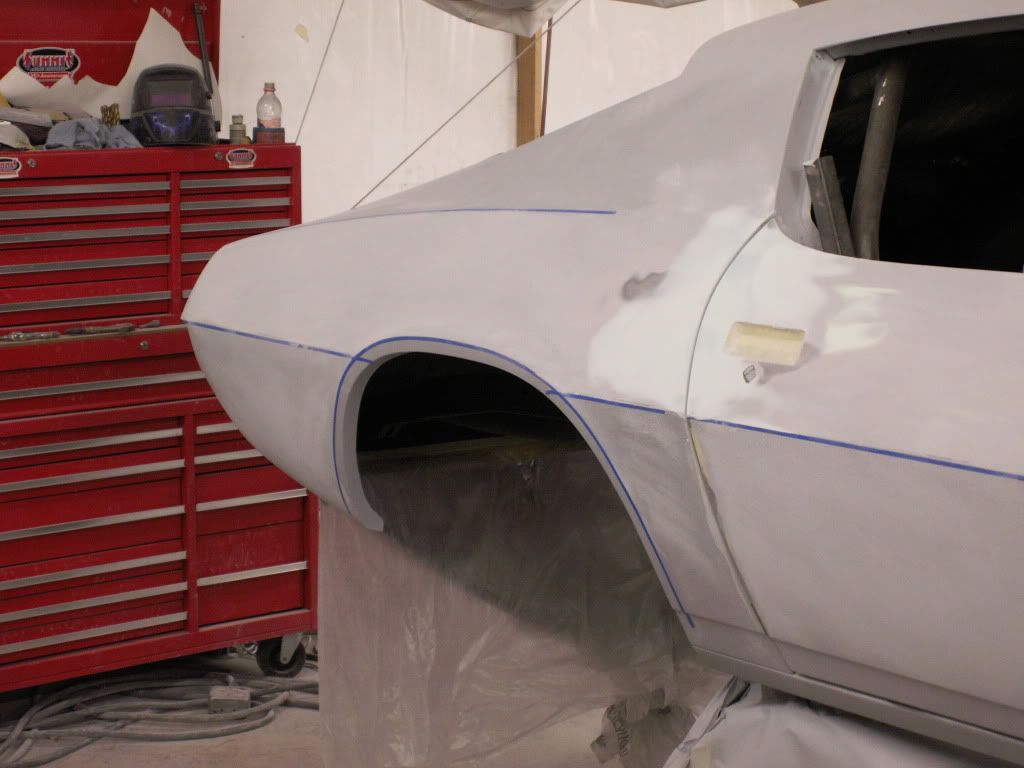http://i835.photobucket.com/albums/z...M/PICT5610.jpg http://i835.photobucket.com/albums/z...M/PICT5646.jpg Once the lines were crisp, panels flat, and gaps tight it was final blocked and disassembled for paint. Subframe, rearend housing and suspension sent for media blasting then powdercoat. |