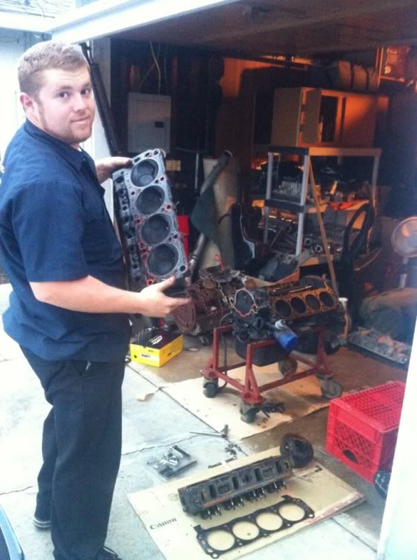Here Is my buddy Nick, he's helping build my motor, Nick's a professional tuner, and engine builder. I'll be leaving most of the motor work up to him, Plans are using roller internals in my factory block, high compression flat top pistons, cam etc. details as they come..