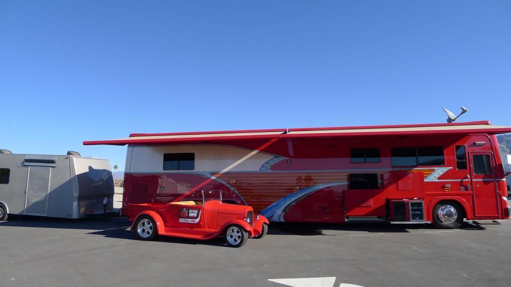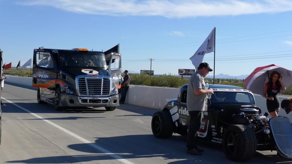 Steve! Was that the best or what?!?! I was sitting up on The RS trailer and Alex had just climbed down the hatch - so it was my turn next... I get half way down the hole and I look up to see this truck totally burning the tires off and coming at the trailer sideways! I hadn't seen the beginning of the drift -- so thought he was wrecking! All I could see for half a nano second was that I was going to die when he came over the wall and took out Phil and Jeremy's trailer.... :willy: :lol: I couldn't climb back out of there fast enough! Got to see him pound turn 10 and just rip up the straight. Awesome stuff right there! |