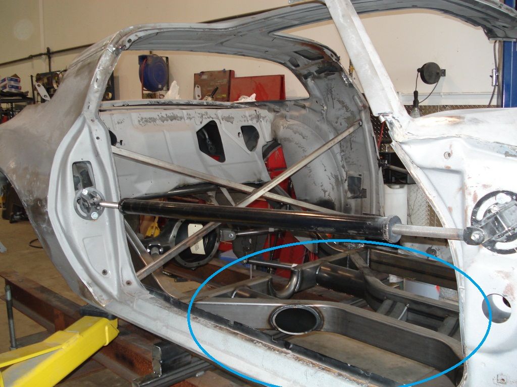 We will be replacing the subframe connectors with a setup similar to AME's maxG chassis. The area circled in blue to get a mental picture. I have been in contact AME to get the materials needed. They sell a similar center section in pieces that I think we will be able to use.