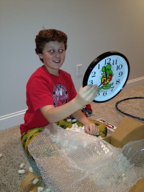 I put in a little surprise for him --- a Rat Fink Clock... He may not know or understand Rat Fink stuff.... but I thought a nice wall clock for his bedroom would help him be on time! HAHAHAHAHA Sent the package today! :cheers: |