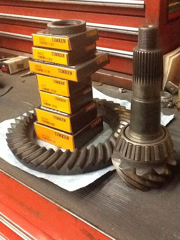 Out back, I bought a 12 bolt, that just happened to be date coded a 70'. It needed to be totally gone through from absolute end to end, and everything in between. Yea for me, again, as I truly love this type of stuff. So I ordered a big stack of bearings and seals, a 3.73 ring and pinion, and a Eaton posi unit. Even bought a fancy rear end cover. Lol.