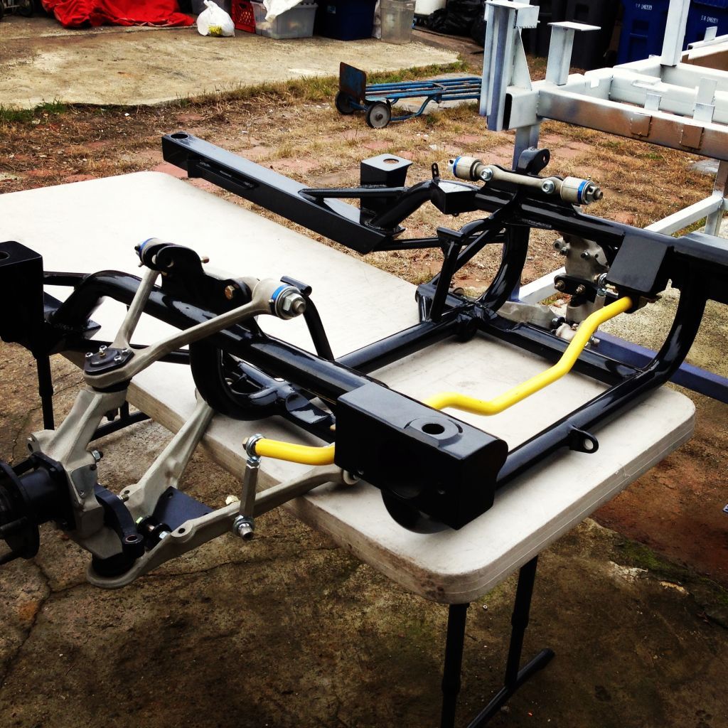 On another note.. I bought this last front sub frame along with the jig from a local fab/performance shop. The guy got rid of his business and moved overseas. I really dig it. It has the OEM box tubing look to it, matched with tubular up front. It uses corvette c5 components. I cant remember what the castor is but its up there 10-13 degrees or so. Ready for LS motor, del-a-lum bushings, pretty bad ass if you ask me. Havent really spent time on messing with it yet, but hell, if I get enough interest in these, I may start to fab these up and offer to those interested. http://i832.photobucket.com/albums/z...ps4c7339cb.jpg John |