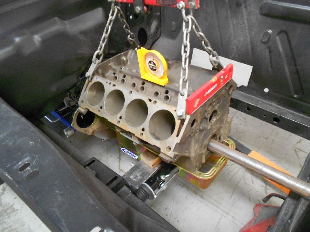 http://img.photobucket.com/albums/v3...ps5c571096.jpg Brian cleaned the Rod & Custom crossmember getting ready to weld motor mounts. http://img.photobucket.com/albums/v3...ps471f790d.jpg Getting ready to test fit the FE block with the Canton pan and TKO 600 http://img.photobucket.com/albums/v3...ps1a88d22f.jpg Making sure the block is in the center, level and has a 4 degree angle so Brian can weld the motor mounts. http://img.photobucket.com/albums/v3...psa4583e1c.jpg |