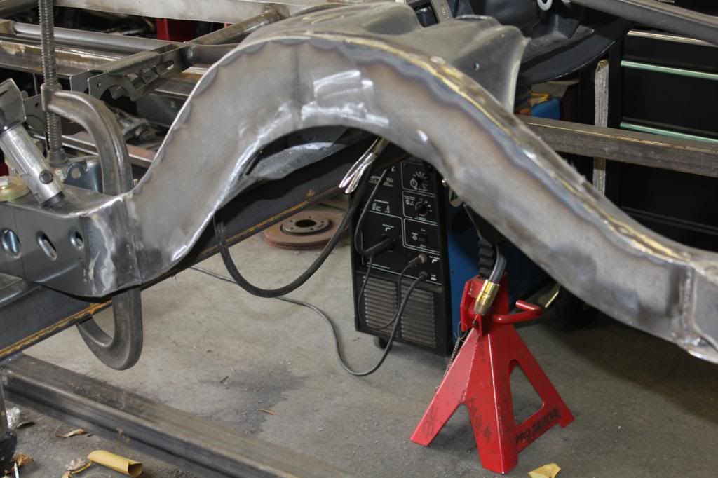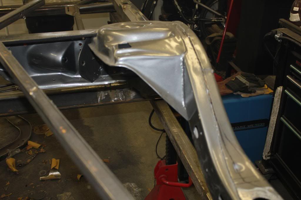 Just thought I would give a little update. Worked all weekend on the rear frame section. This kit is from ABC Performance. He really has thought this through. I am really impressed with what strength was added with this kit. Here is the first and main cut of the frame. The outer plate is removed. http://i115.photobucket.com/albums/n...psa9e012c7.jpg Here is how I braced the frame to hold everything in place. http://i115.photobucket.com/albums/n...pscff61a3e.jpg This is a 3/16" solid plate that is welded into the frame section. http://i115.photobucket.com/albums/n...ps7416a4f8.jpg Here is the top view showing how thick the frame is now. http://i115.photobucket.com/albums/n...ps22839165.jpg Now this is the added inner "C" that goes to the inside. You can see now that it looks like a replacement rear section that one might add if doing a complete rear sectioning. http://i115.photobucket.com/albums/n...ps090aef95.jpg This is the left side after all new material added. http://i115.photobucket.com/albums/n...ps0b26d106.jpg Here is the right side still showing all the old metal of the frame. Big Difference. http://i115.photobucket.com/albums/n...psb68368f8.jpg Lots of grinding and welding. but I think it is going to be worth it. HEEP |