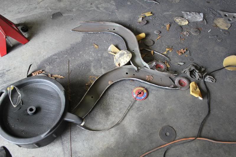 Here is the finished frame. There are a couple of welds that need to be finished on the bottom. http://i115.photobucket.com/albums/n...ps416632a5.jpg Another shot. http://i115.photobucket.com/albums/n...psf8edd4b7.jpg Here is the HPI portion of the frame. http://i115.photobucket.com/albums/n...ps9a002d38.jpg WOW. what a mess. http://i115.photobucket.com/albums/n...ps15bc945a.jpg There is a lot of dust on the floor. Went through many discs and flapper wheels. http://i115.photobucket.com/albums/n...ps035e75d9.jpg Tore down the frame jig. http://i115.photobucket.com/albums/n...ps3cf40092.jpg Cleaned up the floor and the garage. Took a while. Got the frame back in and turned over, ready for the few welds on the bottom that need to be finished. http://i115.photobucket.com/albums/n...psc020c3d7.jpg Her is one of the plates that ABC provides in their kit. It finishes out the frame rail and strengthens it at the control arm mount. http://i115.photobucket.com/albums/n...psca4dec4b.jpg That's about it for now. I hope to finish up the welding this week. I had planned to have the body blasted before I put the frame under it. I think I am going to wait. I'll mount the body, do the tubs in the rear. and get everything done and then go back to blasting the body. HEEP |