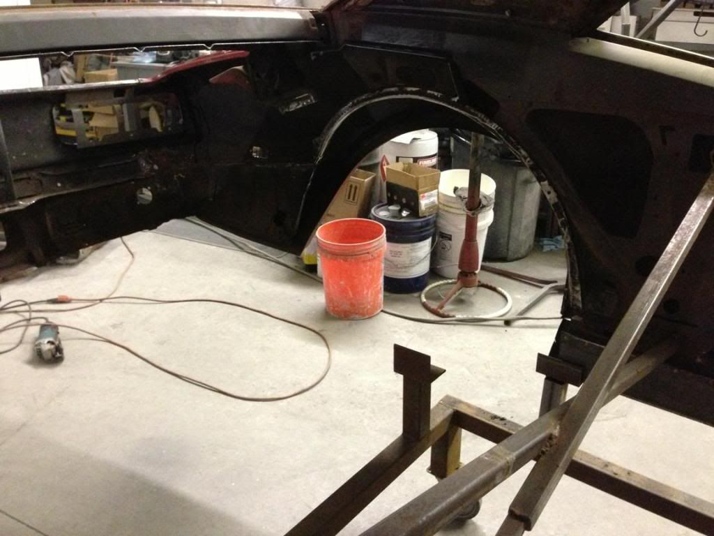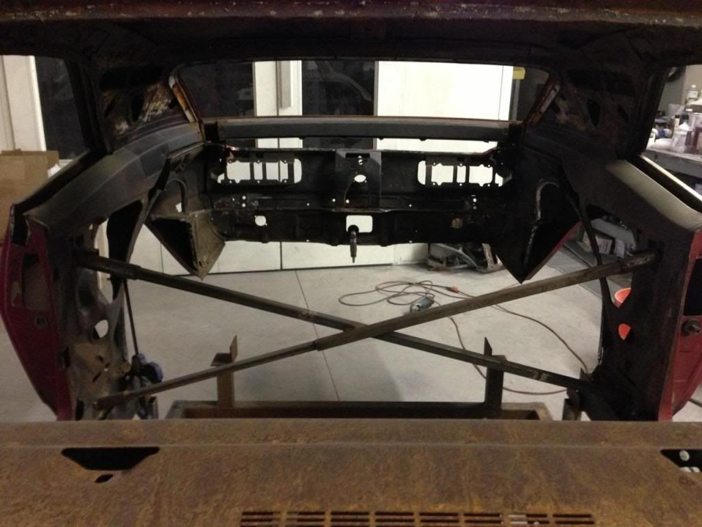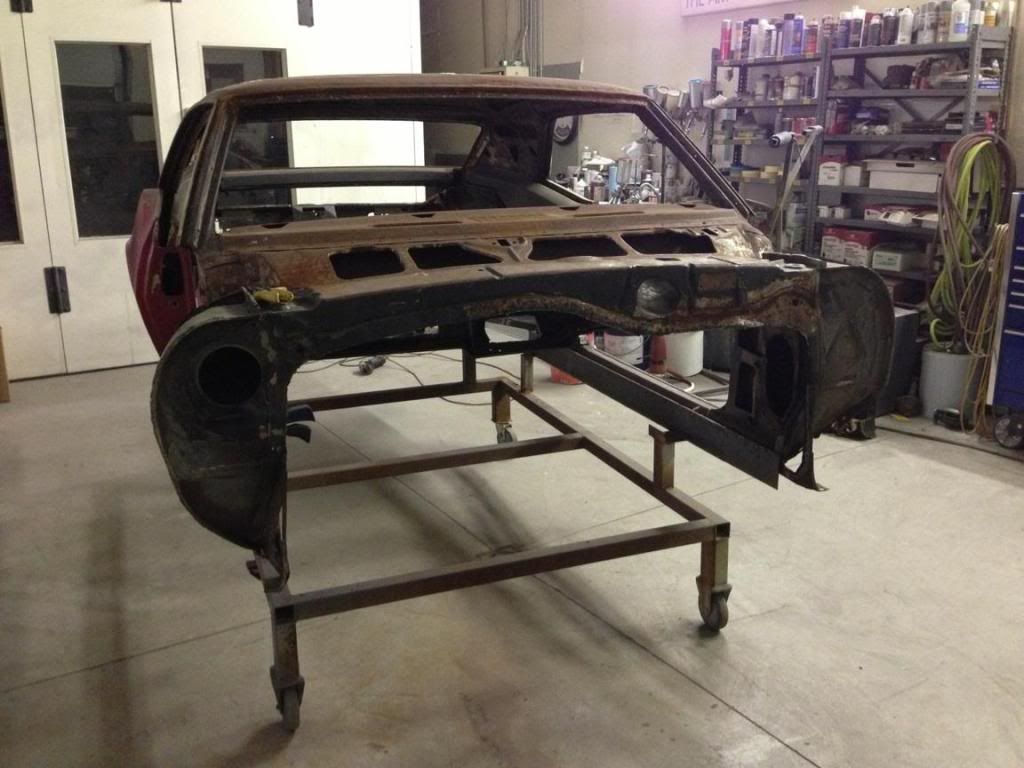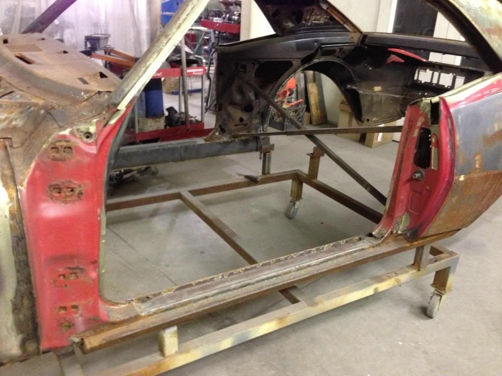 You cannot have a full frame car with the floors and trunk in the way, unless you are The Roadster Shop. The plan is to cut out the offending metal, plate the inner rockers and slide the body over the frame.