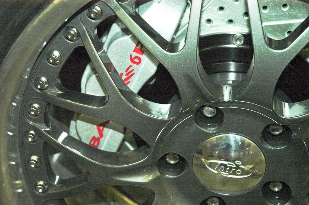 http://i1072.photobucket.com/albums/...ps60fec62e.jpg http://i1072.photobucket.com/albums/...ps32133e1e.jpg Greasable sway bar so it does not ever make any noise. http://i1072.photobucket.com/albums/...ps62d0cd74.jpg Now it is Baer Brakes time..6 Piston front and rear. Silver to match the cars color with the red letters. http://i1072.photobucket.com/albums/...ps2c1e02dd.jpg http://i1072.photobucket.com/albums/...psc52483fd.jpg Like the way the Baer Brakes come with all the items needed to make this one professional kit. http://i1072.photobucket.com/albums/...ps552cf35d.jpg OK now to see the brakes with the new Intro wheels. I did a custom powder coating to the center of the wheels to match the stripe that will be on the car. The outer hoop is brushed with a roller lip. http://i1072.photobucket.com/albums/...ps694d2466.jpg http://i1072.photobucket.com/albums/...psd3a8989c.jpg Got the BFGoodrich tires mounted. http://i1072.photobucket.com/albums/...psc491db26.jpg http://i1072.photobucket.com/albums/...pse57a93be.jpg Little more work to go. Goodguy Ed |