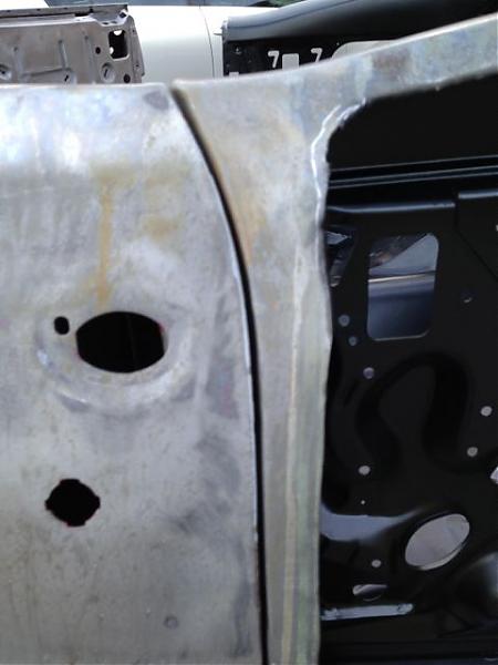 Original quarters and factory deck lid off another Camaro didn't quite fit right and needed work. http://i1158.photobucket.com/albums/...aro/null-5.jpg http://i1158.photobucket.com/albums/...aro/null-3.jpg I was hoping to keep the factory quarters but found more body filler than I expected. After stripping the paint it looks like the car was once a ping pong ball. Front, rear, and both sides had damage. http://i1158.photobucket.com/albums/.../null-19-2.jpg http://i1158.photobucket.com/albums/...ro/null-36.jpg http://i1158.photobucket.com/albums/...ro/null-97.jpg I also found the passenger quarter inside support that the door latch bolt ties to was bent up so off they came. http://i1158.photobucket.com/albums/...o/null-1-1.jpg Trunk floor and dropouts weren't too bad but since I've gone this far they're getting replaced. http://i1158.photobucket.com/albums/...aro/null-9.jpg |