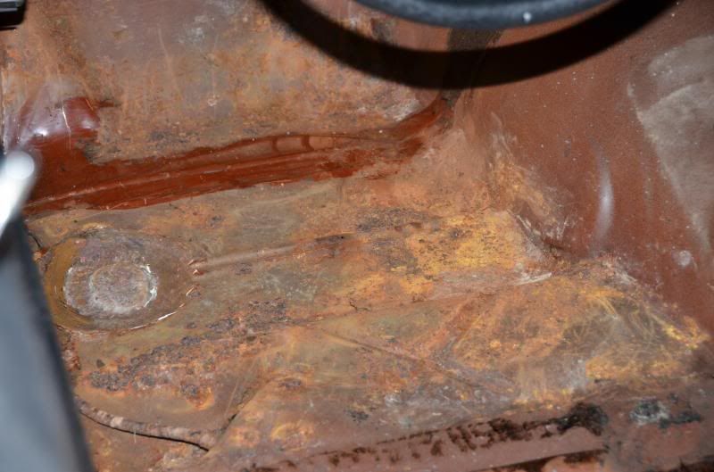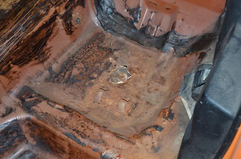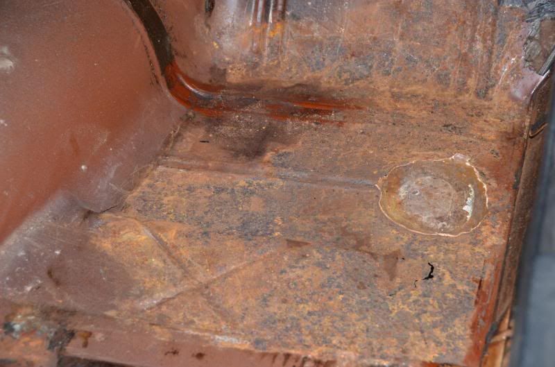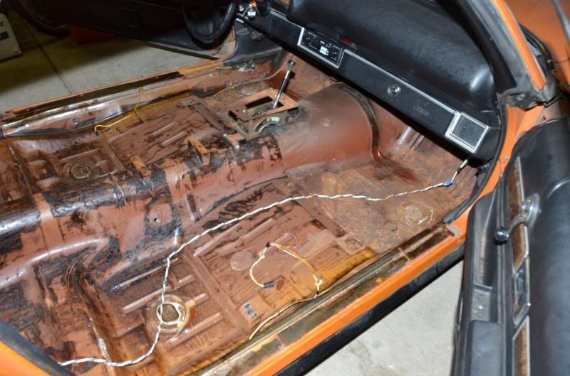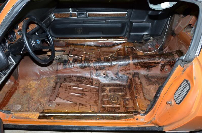 Looking these pictures you will see why I bought this car! I found two rust spots under the carpet :bang: but I think you will all agree that for a 40 year old car it's not to bad?? First I removed 55lbs of old nasty carpet and factory sound deadener. And this is what was left. http://i79.photobucket.com/albums/j1...ps29df02ae.jpg http://i79.photobucket.com/albums/j1...psb8a1ecb1.jpg Driver side under the rear seat has a couple of holes. http://i79.photobucket.com/albums/j1...psa6e8ef1a.jpg http://i79.photobucket.com/albums/j1...ps0cfde202.jpg Driver side front no holes just some scale http://i79.photobucket.com/albums/j1...ps5a15f16b.jpg Passenger side front will require a replacement floor pan, it's the worst part of the floors. http://i79.photobucket.com/albums/j1...psab3bb807.jpg |