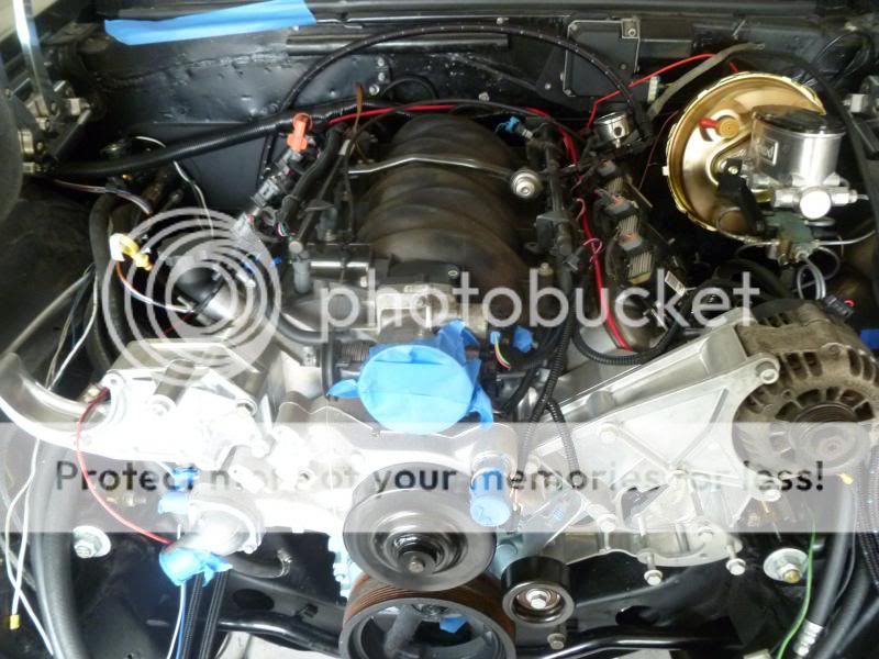 Picture of the engine bay with Holley accessory brackets, LS1 intake/fuel rails, truck coils