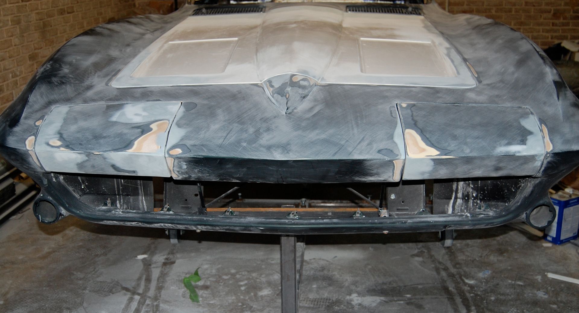 I dropped the car off two weeks ago at paint. They fit the hood a bit better and adjusted the wiper grilles, but that is about all that has happened so far. Hopefully they can have it in color by January. Apparently my novice skills at blocking werent the best, so they are going to reshoot the car with slick sand and block one more time.