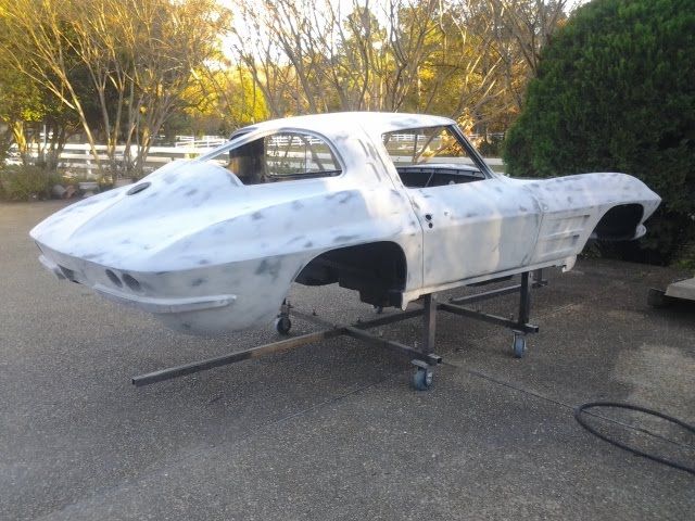 I block sanded the entire body again, then applied two more coats of SPI black epoxy. After the SPI black epoxy sat overnight, i applied two coats of Evercoat Slick Sand and then sanded with 180 grit. http://i852.photobucket.com/albums/a...ps2b6718ab.jpg http://i852.photobucket.com/albums/a...pse83b430a.jpg http://i852.photobucket.com/albums/a...ps04f4981e.jpg One of those small details that eats up time. Hinges rebuilt and coated with SPI black epoxy. http://i852.photobucket.com/albums/a...psab6099d4.jpg I decided to ditch the fuel injection emblems and go with the early style 63 emblem http://i852.photobucket.com/albums/a...ps84293c0d.jpg http://i852.photobucket.com/albums/a...ps1e253f76.jpg |