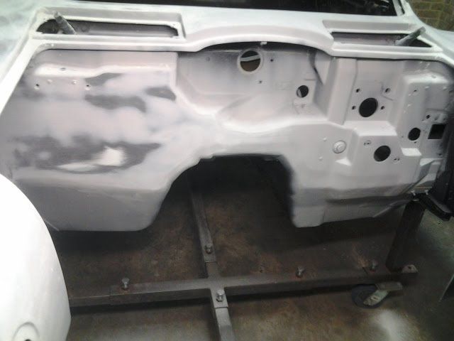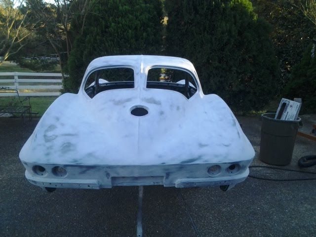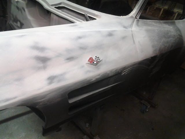 434 Hours After seeing a 63 split window without an antenna at SEMA i decided that i would copy that person's car and do the same. Removing the antenna gives the rear of the car a much sleeker look. I used a Hideaway antenna on a custom Mustang i built last year, so i will do the same for this one. http://i852.photobucket.com/albums/a...ps9e2c2f59.jpg http://i852.photobucket.com/albums/a...ps8a309bc3.jpg Two more coats of slick sand and a whole hell of a lot more sanding. I sure hope this thing is as smooth as glass! Oh, and surprise...I ordered SPI black today for the basecoat. I saw a 63 in cyber gray a few weeks ago and it did not look so hot. I thought about switching to silver, but most every 63 restomod i have seen in the last year has been silver, so black it is...straight black, no metallic. http://i852.photobucket.com/albums/a...ps4eb98ef8.jpg http://i852.photobucket.com/albums/a...ps15b97866.jpg http://i852.photobucket.com/albums/a...ps272a96be.jpg |