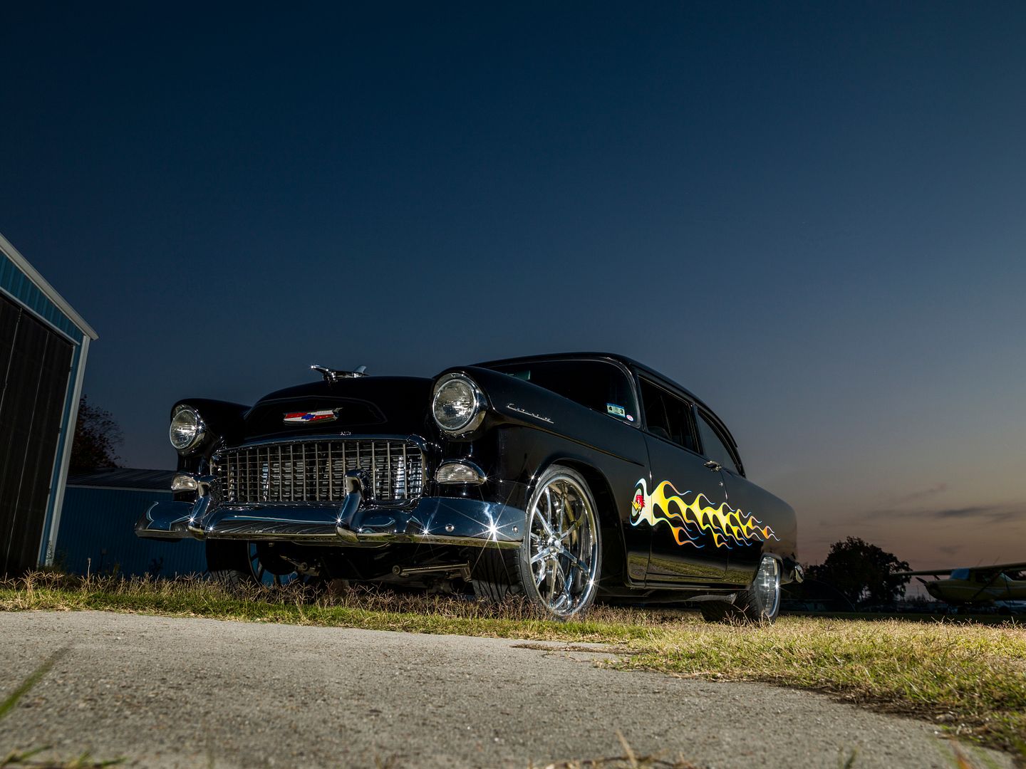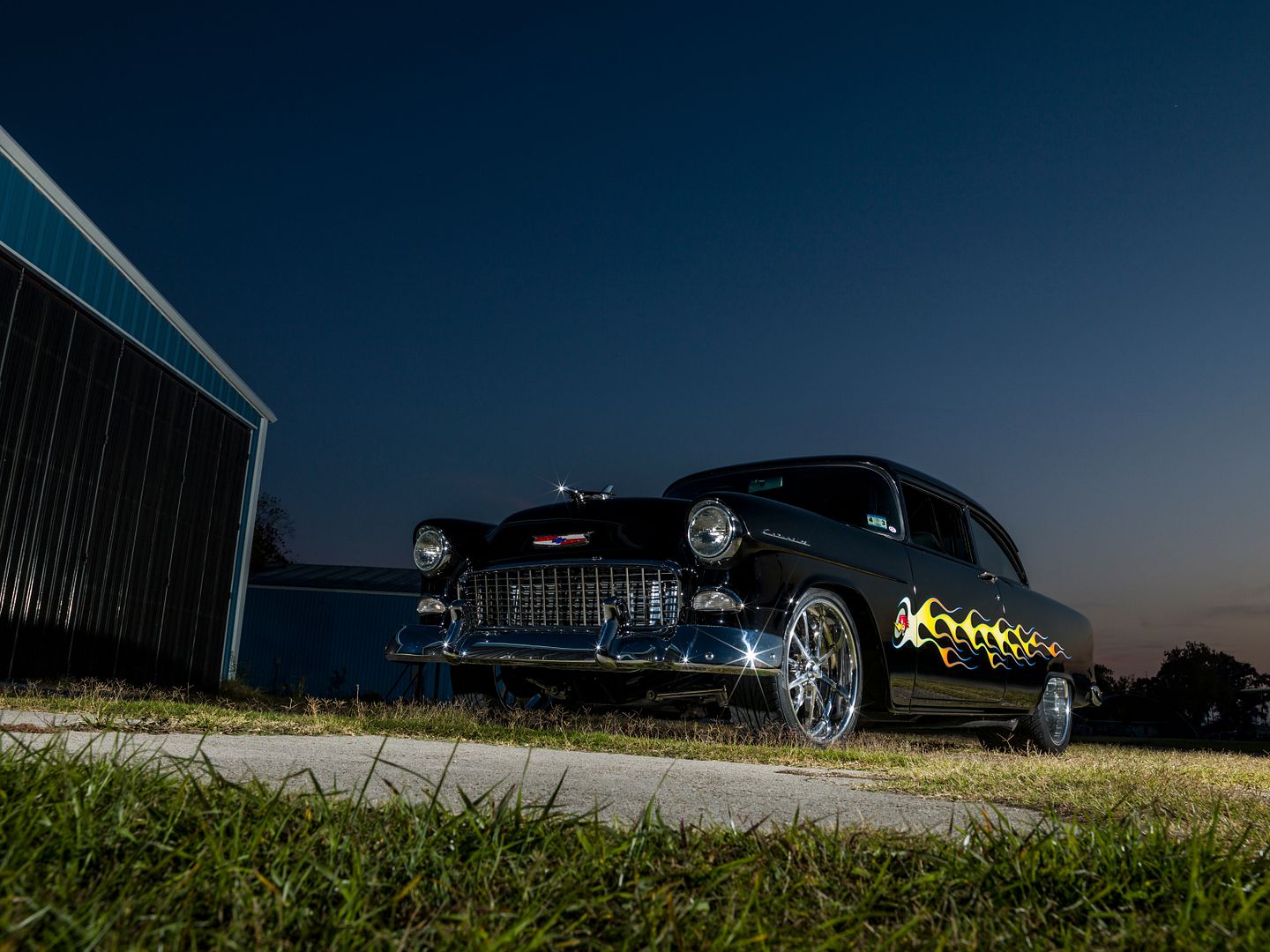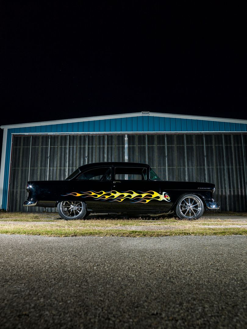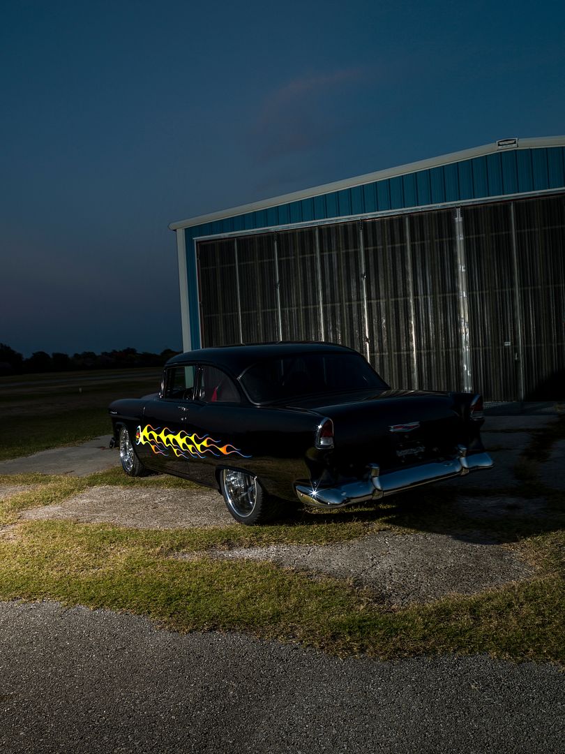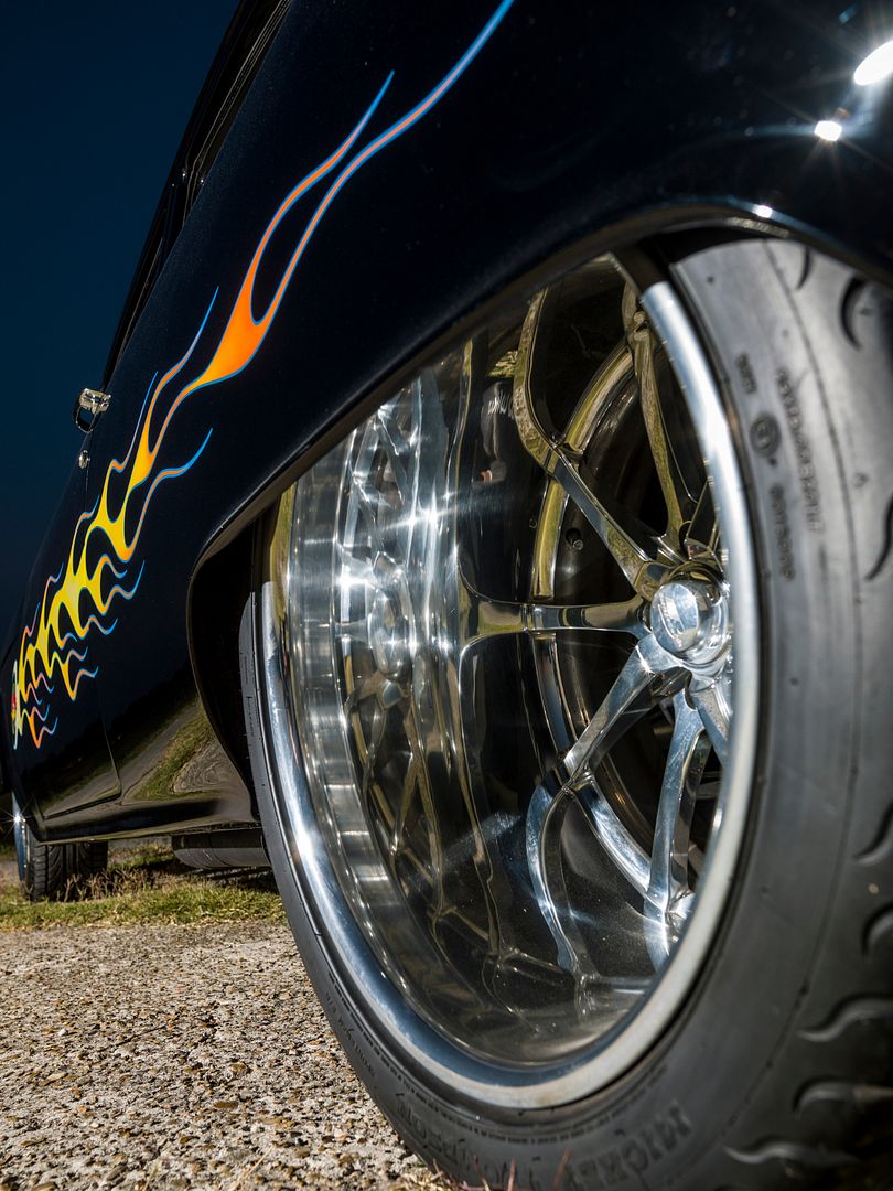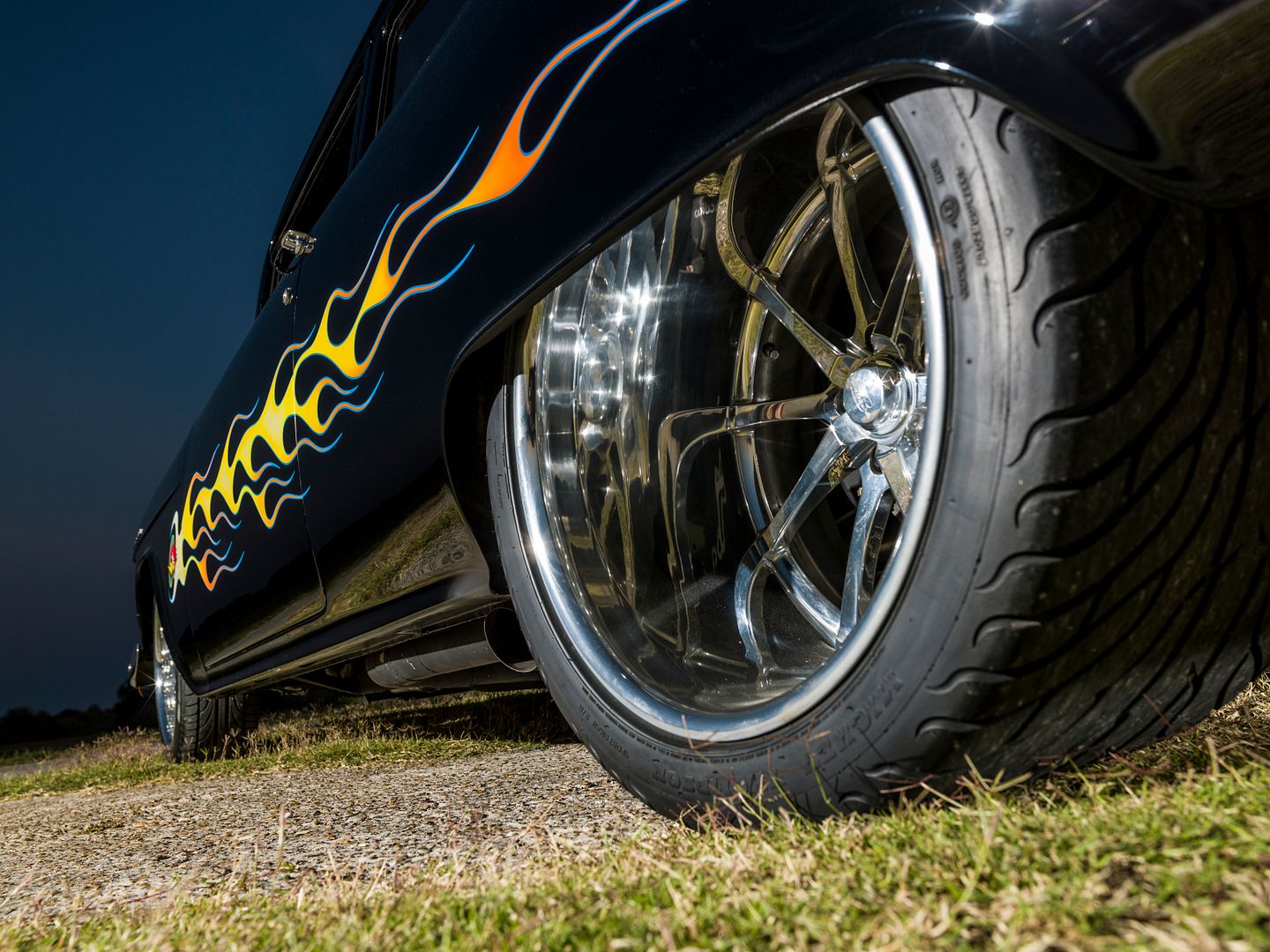 Great job!!! I have a 55 I'm working on now. what size front tire were you able to use ??? love the stance !!!!