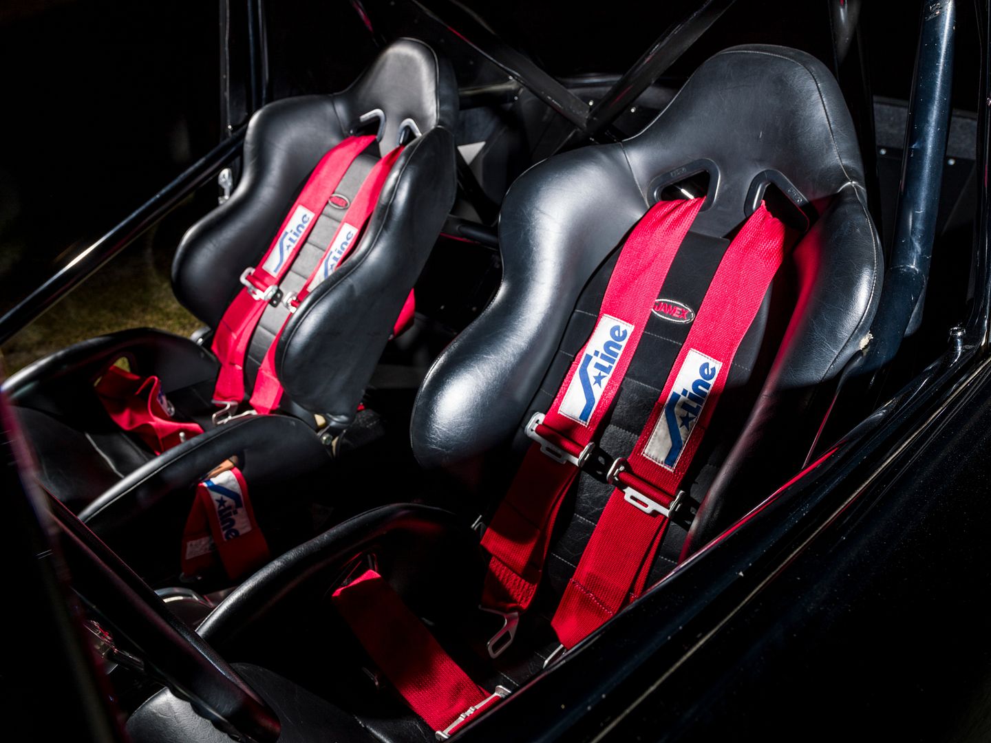 On the inside, we re-tubbed the back of the car to make room for much larger wheels and tires. We also got rid of the wood panels that had been covered in carpet and made some out of aluminum.