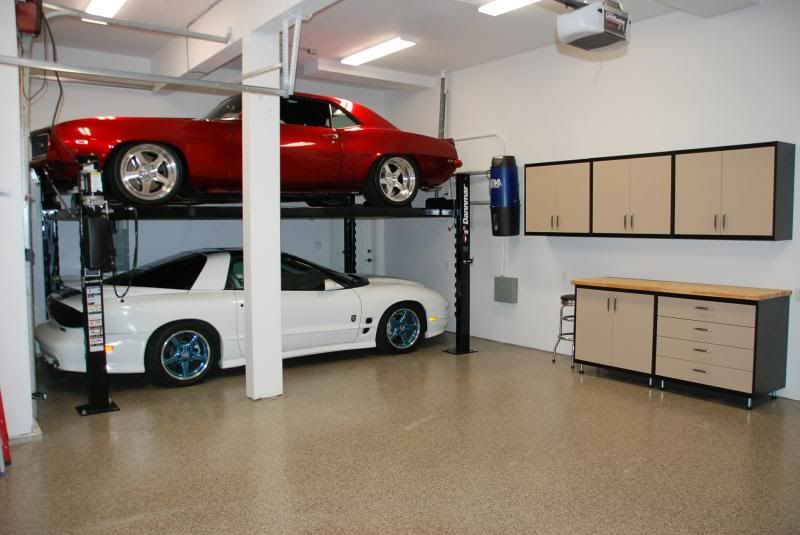 The only area I'd ever paint would be if I had a museum.... I've yet to see one that holds up, commercially applied or otherwise. The Audi dealer just built a new building with an incredible service area... they tiled the whole thing. I wouldn't do that either because of the way I use my floors. The floor can be a lay out area -- it might be jackstands -- or the lift -- I spill oil -- I weld on it... Mine is raw. The only thing I wished I had done was to seal it when it was still brand new. |