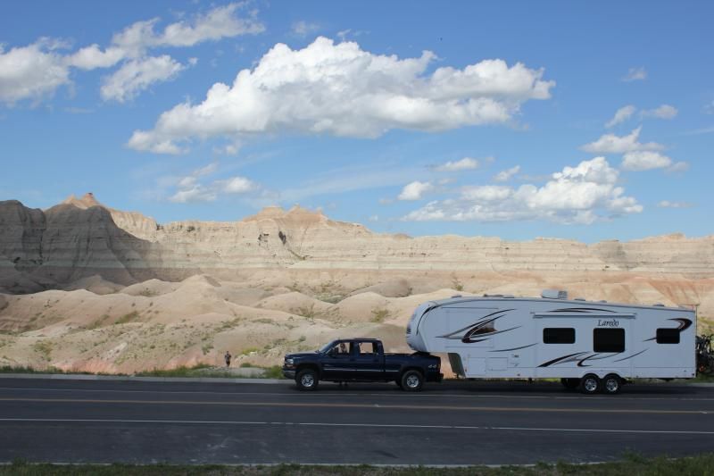 Thought I would post a few pics of the hotel and the puller of said hotel. Please say hi to Big Blue, and Laurie. Here they are in the Badlands http://i115.photobucket.com/albums/n...ps46a277eb.jpg http://i115.photobucket.com/albums/n...ps162ed5be.jpg http://i115.photobucket.com/albums/n...ps1fc17e47.jpg Campsite at Spokane Creek Campground @ Rushmore http://i115.photobucket.com/albums/n...psa8c7b062.jpg Here's a slight problem we had on the way. really glad someone needed to go tot the bathroom. http://i115.photobucket.com/albums/n...ps0b5a8df6.jpg and of course the campsite at the Walmart in Bozeman MT. http://i115.photobucket.com/albums/n...ps4488b227.jpg Played a little midnight four sguare in the parking lot that night http://i115.photobucket.com/albums/n...psa469662f.jpg So far, this has been an excellent vacation. |