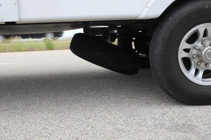 That is where the spare is mounted. Like a pickup truck. However, it's supposed to be tight against the frame. For some reason, it has started loosening up. Another few miles, and I would have lost it. I tightened it up, and made sure the son checked it at every stop. Yes, we are having a great time. The kids are enjoying every minute. |