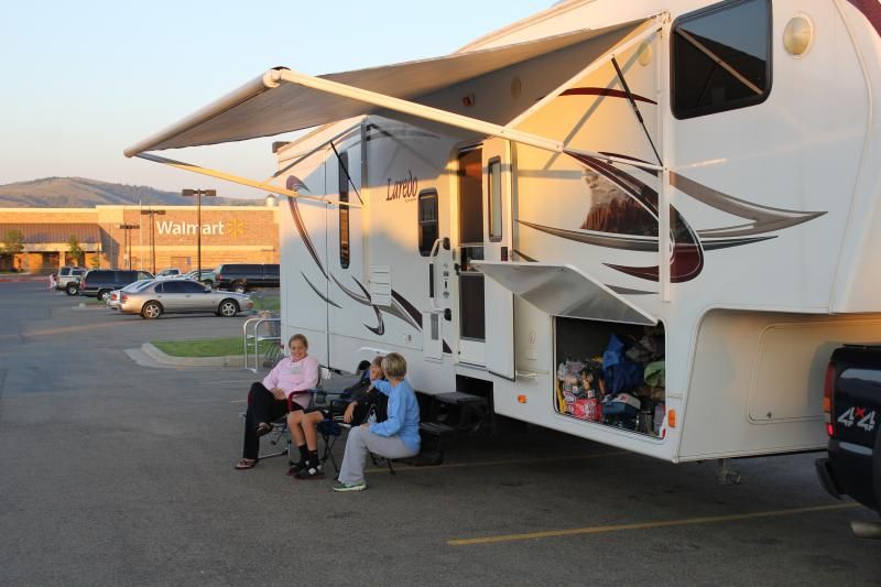 Well, we made it. Pulled in today at 10:00am. Mountain time. Got everything set up and noticed I had a tire on the camper that had a bulge. So off we went in search for a tire shop in little west Yellowstone. They got us fixed up in no time. Thanks to jake's tire and automotive here for that help.