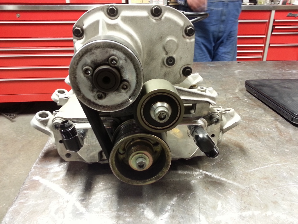 Had to take the supercharger apart, 1. separated the blower for the manifold, 2. take out the cooling radiators to clean and install new fittings, 3. Take all parts off of the superchargers, and replace, 4. take rotors out, check for damage, (none), 5. check for clearance, new bearings, put back together, check clearances again, 6. replace all external bearings, 7. replace all O-rings and seals, 8, put blower and manifold, (the new LS-3 manifold), back together,,,,,done