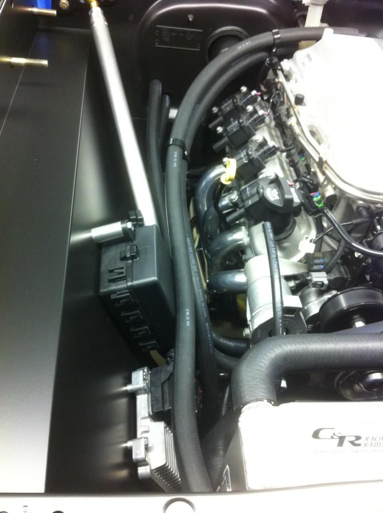 I did not have a motor at this point in the build but I had a buddy that had a broken ls3 block. This saved me a considerable amount of time. I bought a QuickTime ls to mopar housing because the viper transmission has a different spline and length than the t56 for the F body's. It's rated at 550 ft-lbs vs the gm equivalent 450ft-lbs http://i194.photobucket.com/albums/z...agejpg1-14.jpg http://i194.photobucket.com/albums/z...agejpg1-15.jpg http://i194.photobucket.com/albums/z...magejpg2-9.jpg http://i194.photobucket.com/albums/z...magejpg3-5.jpg Original floor and man it was perfect! By the time I trimmed a little there and a little here the whole tunnel is gone. I set the drive line angle to about 2.5 degrees+\-. I had to cut up the tci trans mount and modify it to my specs. The drive line angle looks perfect under the car.......hope it's vibration free! http://i194.photobucket.com/albums/z...magejpg4-7.jpg |