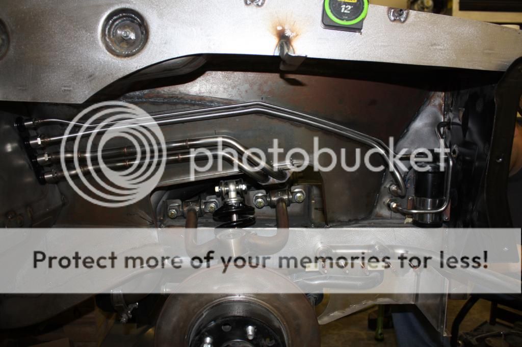 We hardlined the heater and A/C lines inside the inner fenders, and hide the dryer and trinary switch in the front corner. worked out pretty well... http://i461.photobucket.com/albums/q...a/IMG_1794.jpg This is our heater line "bulkhead", it comes straight off the LS7 water pump...http://i461.photobucket.com/albums/q...a/IMG_1795.jpg Our new front bumper mount. http://i461.photobucket.com/albums/q...a/IMG_1525.jpg http://i461.photobucket.com/albums/q...a/IMG_1526.jpghttp://i461.photobucket.com/albums/q...a/IMG_1527.jpg Starting to flush mount the glass, and go over some designs with Jason Rushforth. http://i461.photobucket.com/albums/q...a/IMG_1629.jpg |