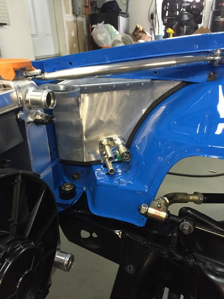 So again theme here is keep it clean, so I built a custom air box/close out panel that serves both as a cold air box and a spot for the AC line bulkhead connector. All AC lines running through the fender and connections made at the panel.