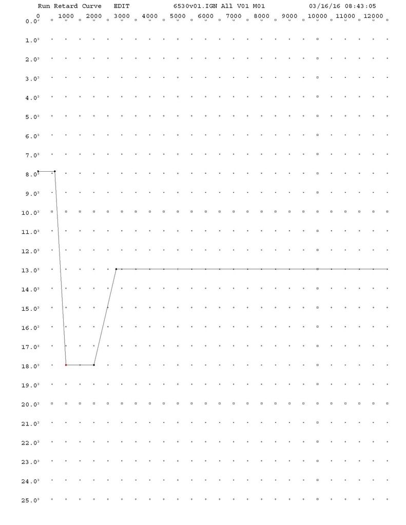 I ended up plotting the retard curve to 7* advanced at idle (20" vacuum) and a pretty linear curve starting at 1000 RPM at 7* ending at 32* advance at 3000 RPM. I believe it would actually like a little more timing on the top end and a little less timing at idle but the box is limited to 25* of retard so this is the happy medium so far. It runs great, starts great, idles great, and I haven't heard even a hint of detonation anywhere and I've tried to get it to ping. Quote: