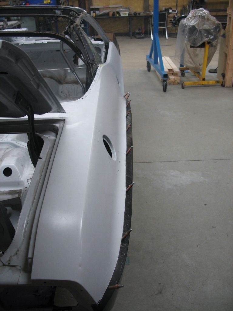 Drivers quarter cut out and the passenger quarter has been widened. Nothing crazy, just a nice subtle change that still flows nice with the body line. Still some minor tweaking left.