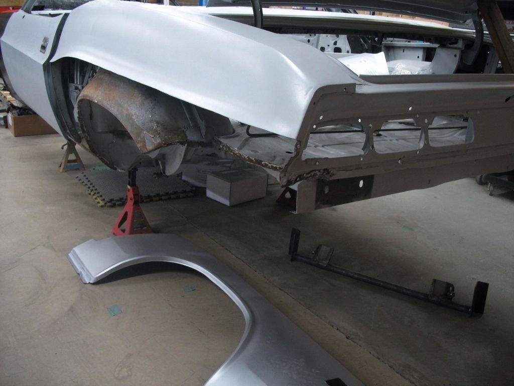 Cleaning up the rear of the Challenger to get her wide and ready for big wheels.