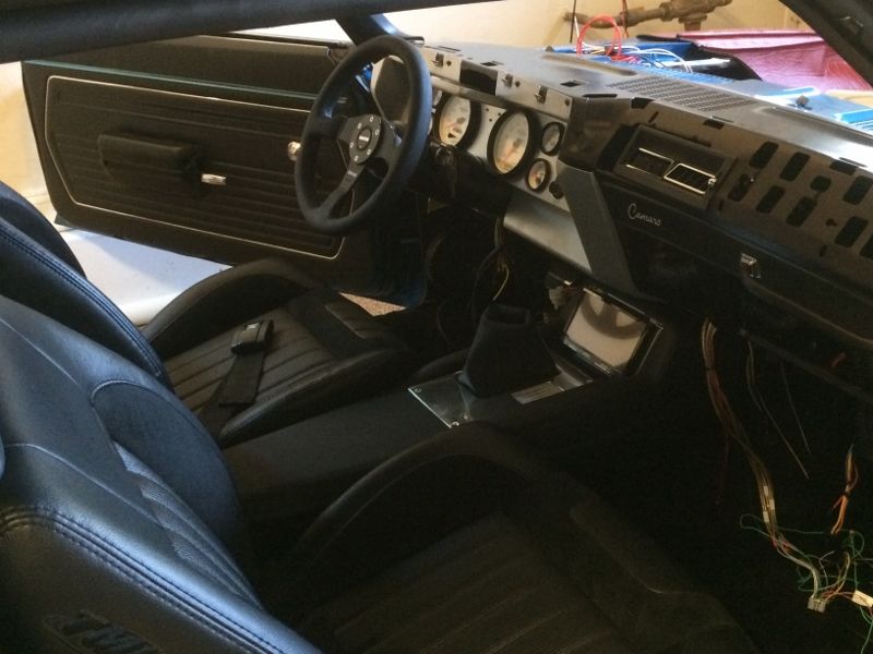 Engine and tranny dropped in. Had to go with the Speedtech Headers to clear everything, Brakes, TMI Sport Seat Covers and Foam, Modded the Rear Seat to Fit the Tubs and Quadralink, AC installed, Console with a Pioneer Double DIN AP Radio, DSE Dash powdercoated Silver with Phantom II Gauges.