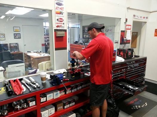 This is how we roll! Great group of people.. Working on the track.. coming back to the shop & get cars on the lift for repairs & adjustments.. JJ making some changes on a set of shocks early Sunday morning.. & a few more action shots! Last batch of pictures..