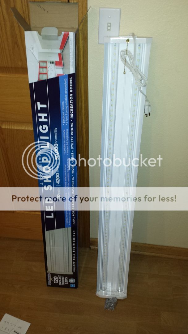 I am just getting back in garage and project mode, and this is a great setup for anyone looking into improving light on their garage. No more issues with cold weather or flashing in the garage, plus compared with regular T8's they are a night and day (no pun intended) difference. The rated lumens do not tell the whole story, they emit a very clean and uniform white light. These are the ones I am referring to and they are now $32 at Costco per set: http://costcocouple.com/wp-content/u...-4-640x480.jpg http://costcocouple.com/wp-content/u...-1-640x480.jpg http://costcocouple.com/wp-content/u...-2-640x431.jpg |