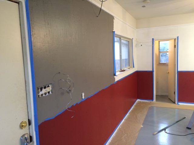 First step was to clear things out to clean and paint the floors I went with the Rustoleum 2 stage floor paint. I decided to leave out the chips to make it a solid color. It looks nice but I was surprised how quick my dog could scuff the shiny finish.