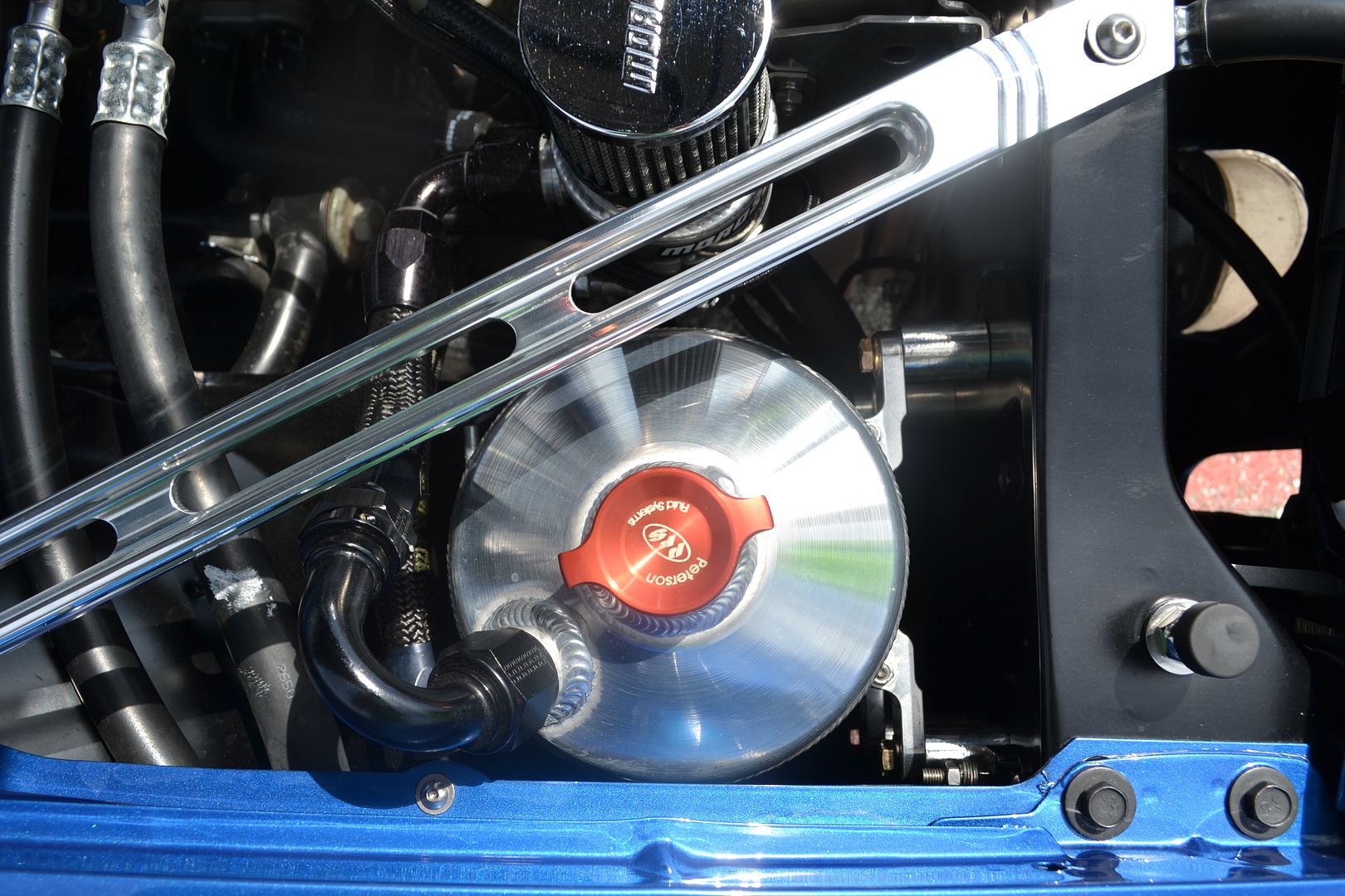 Most of them are using a factory dry-sump oiling system. Mark Stielow's builds use a factory dry-sump oil system, but he uses a Peterson tank. The only good location for the tank is on the passenger side in the bulkhead. The location will vary on the car, but if I had a dry sump then it would be that location. My reason is not about weight, but to hide the tank from view. The primary reason is the custom work in the engine bay. There is lot of work to put in that location.