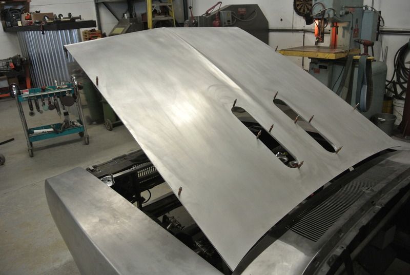 Hood Fab... .090 Alloy keeping with the theme we are removing the pockets for a cleaner look. It will also have a Max Wedge inspired hood scoop.