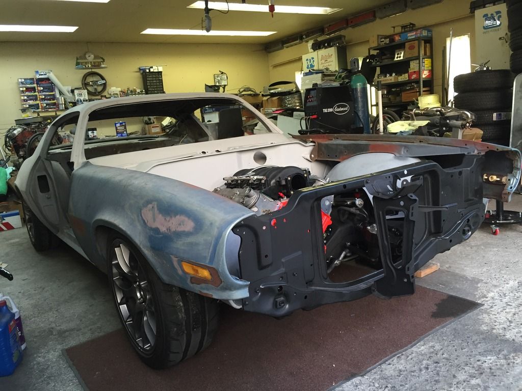 Here are some pictures of it bare and with sheet metal going back on I already had cut for the mini tubs at this point once it got home I finished them up and its time for the Quadralink and mocking up the front suspension and motor and transmission.